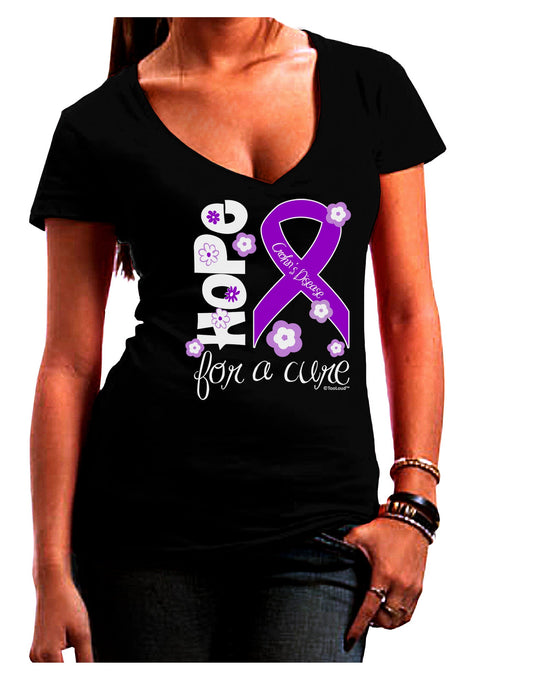Hope for a Cure - Purple Ribbon Epilepsy - Flowers Juniors V-Neck Dark T-Shirt