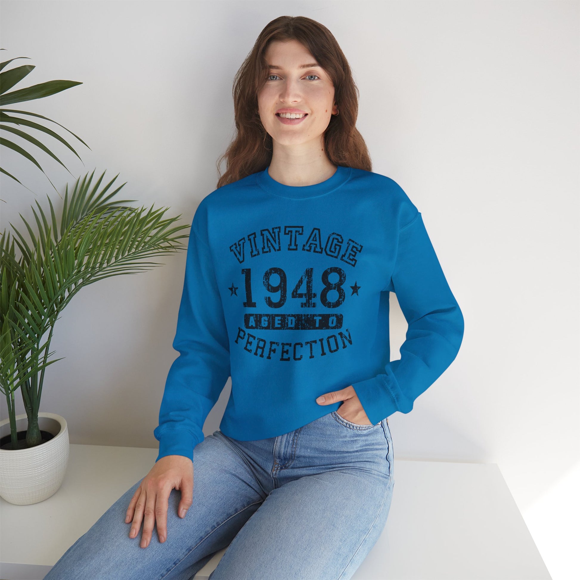 Designed for comfort and nostalgia, this cozy sweatshirt proudly displays the year 1948, making it the perfect gift for birthdays, anniversaries, or anyone who loves a vintage vibe. The simple yet bold design pairs effortlessly with any casual look.