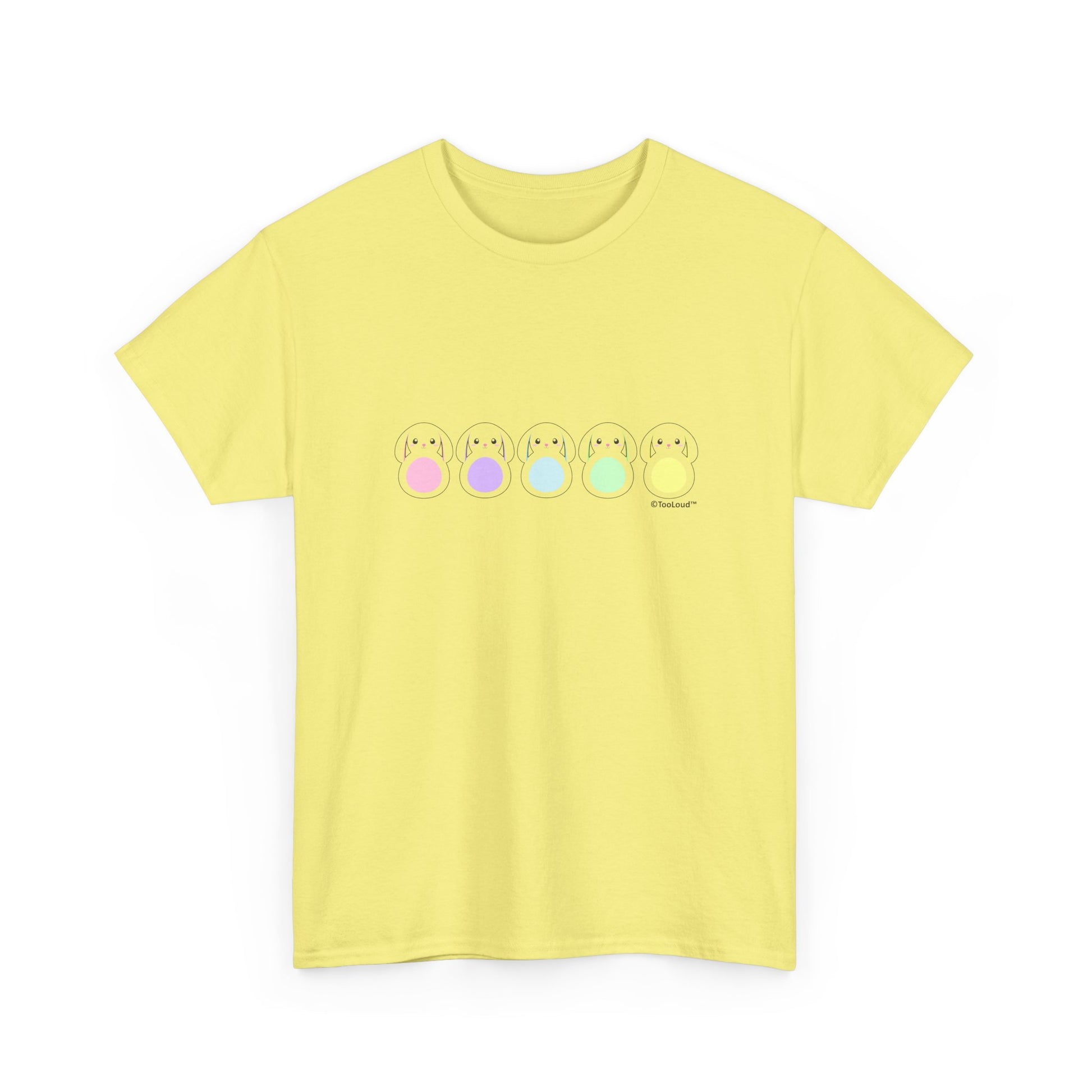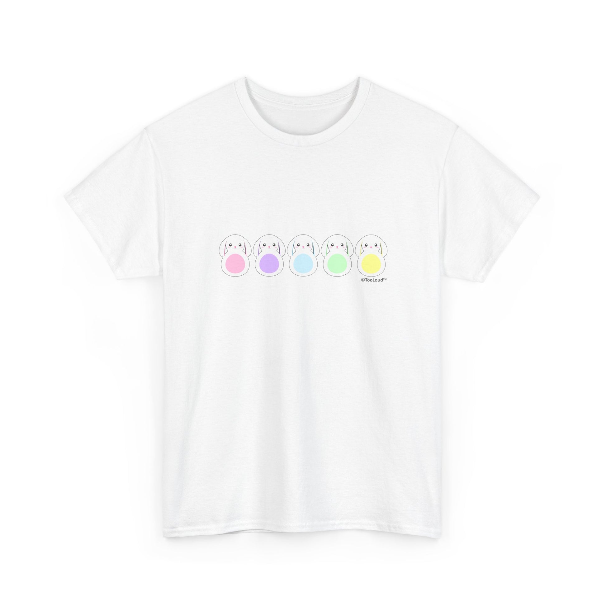 Light, cheerful, and irresistibly cute—this pastel bunnies tee is the perfect addition to your spring wardrobe.