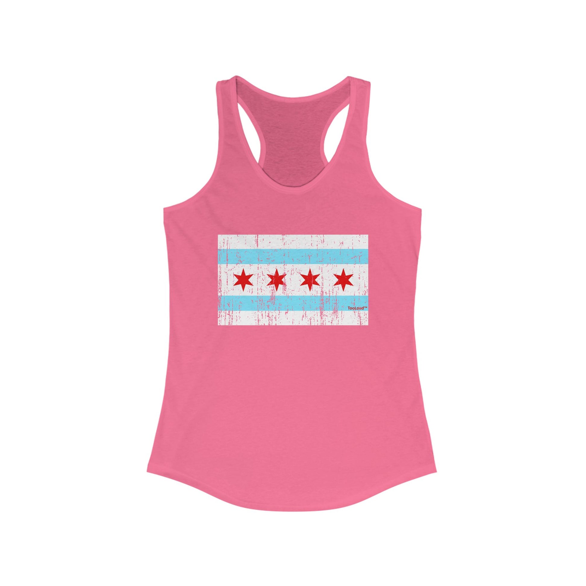Distressed Chicago Flag Design Women's Racerback Tank Top by TOOLOUD