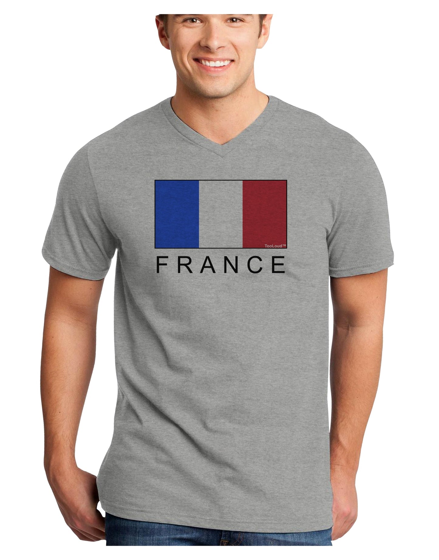 French Flag - France Text Adult V-Neck T-shirt by TooLoud