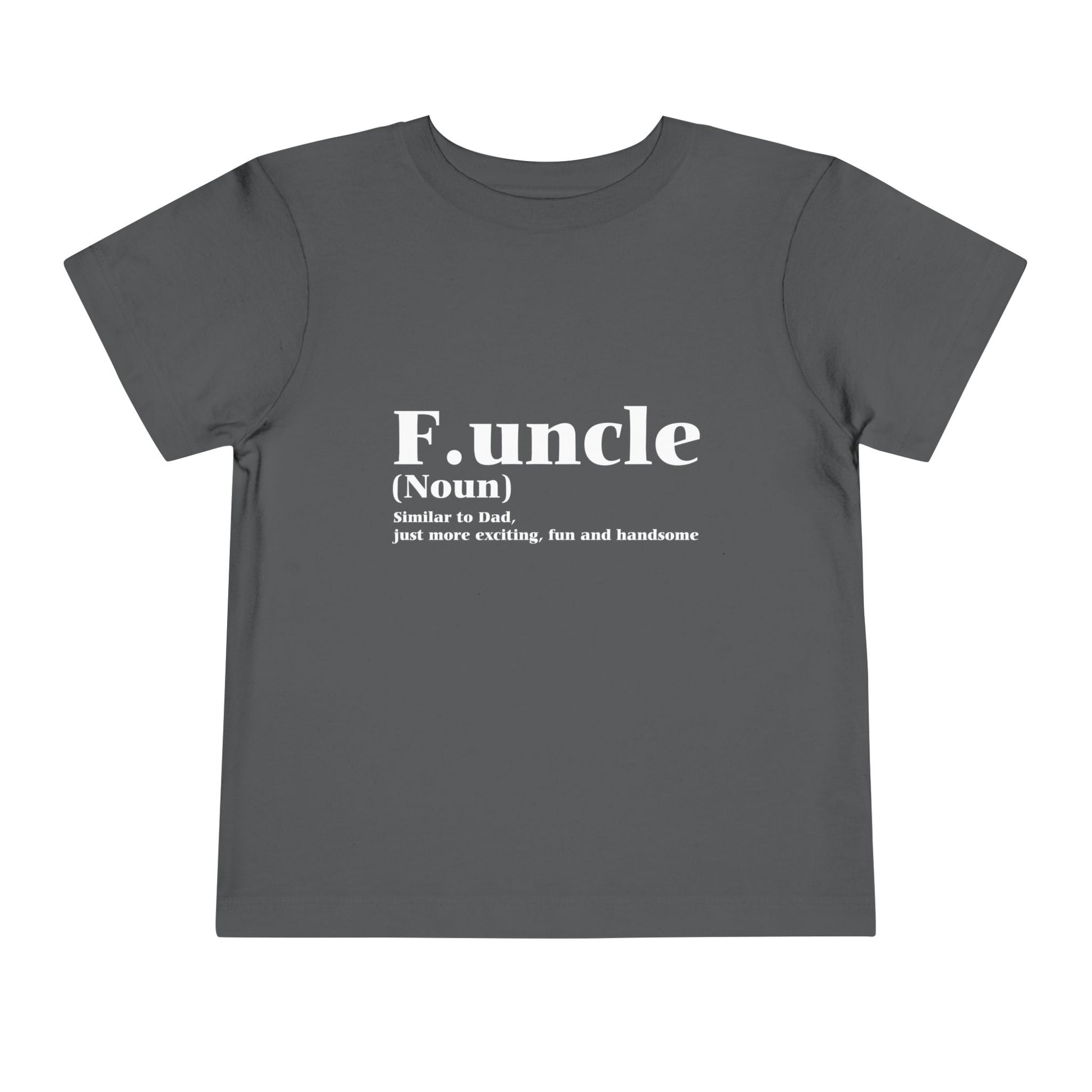 Cute, playful, and full of personality—the Funcle Fun Uncle Toddler T-Shirt Dark by TOOLOUD celebrates that special bond with the “fun uncle.” Perfect for little ones who love spending time with their favorite family member.