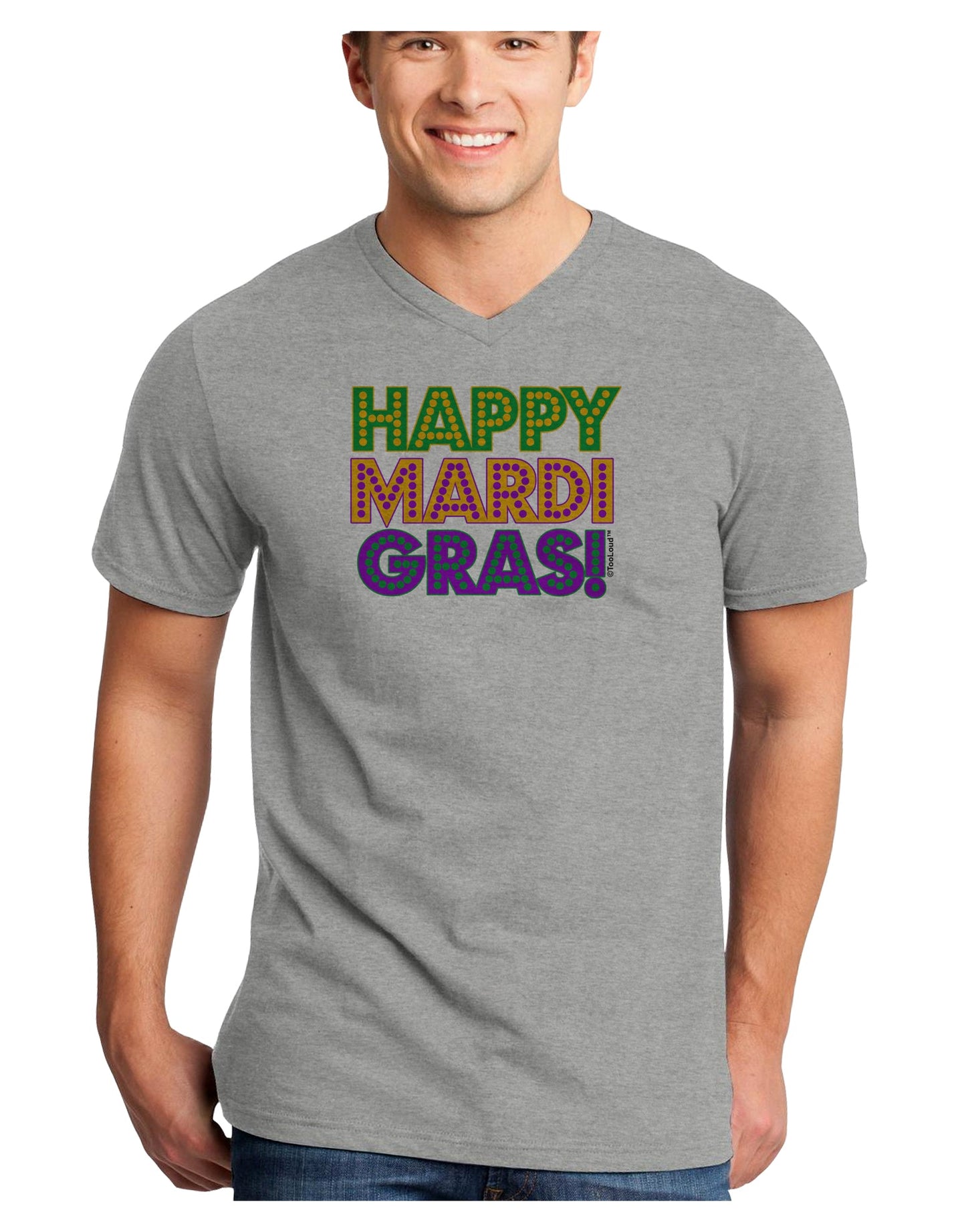 Happy Mardi Gras Text Adult V-Neck T-shirt by TooLoud