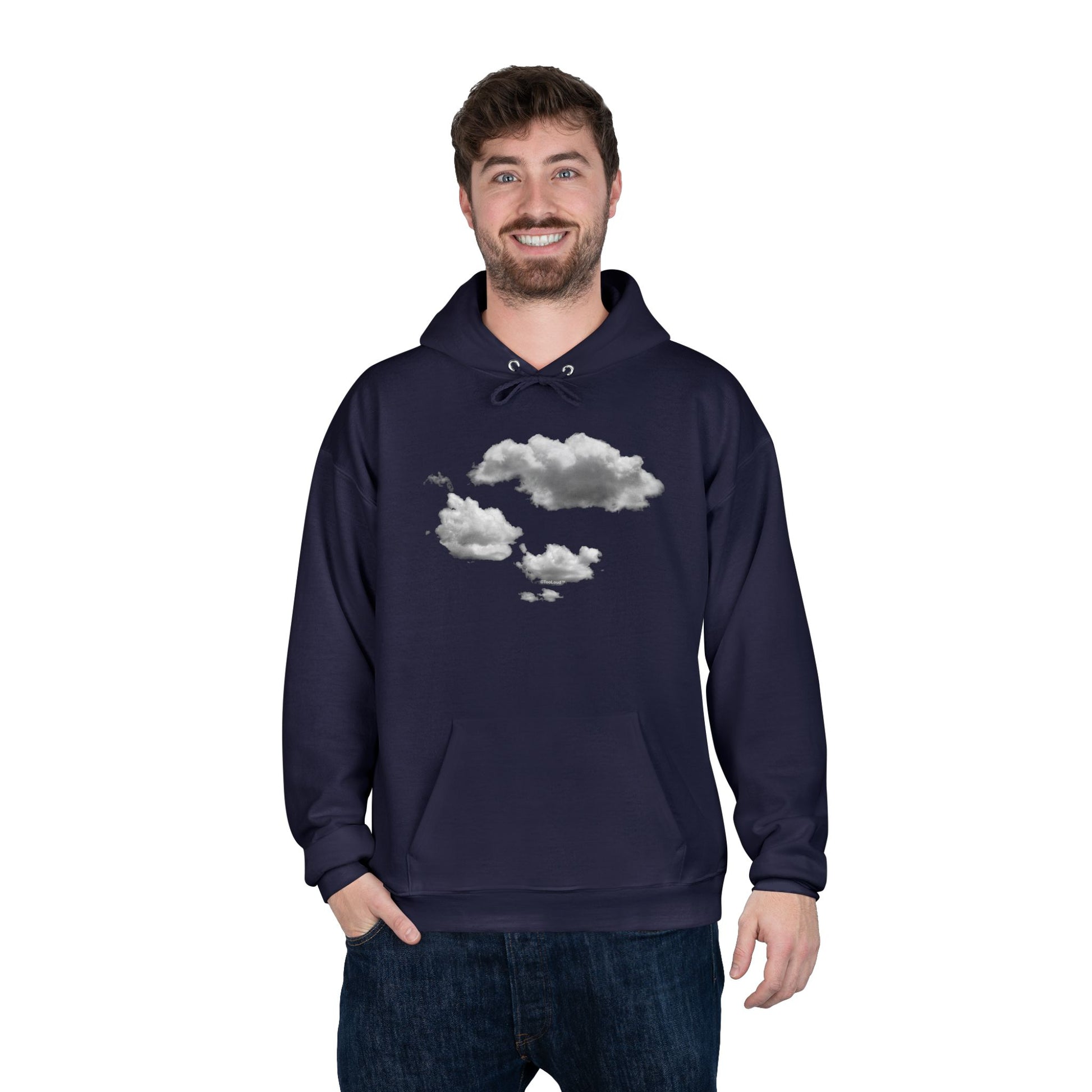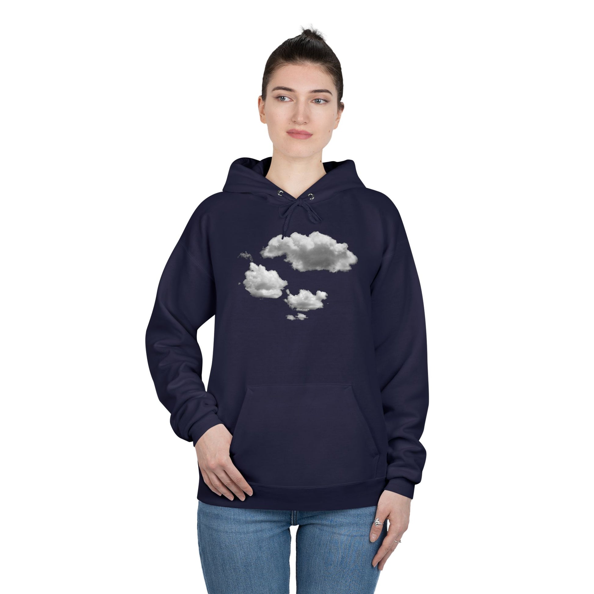 Dark hoodie base that enhances the contrast of the cloud artwork
