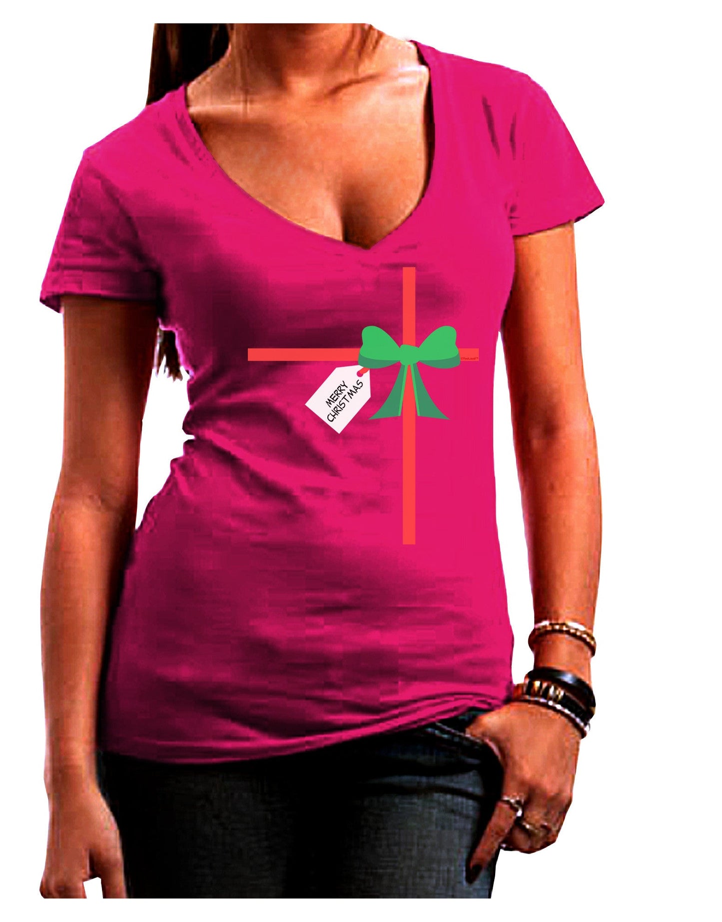 Merry Christmas Present Gift Juniors V-Neck Dark T-Shirt