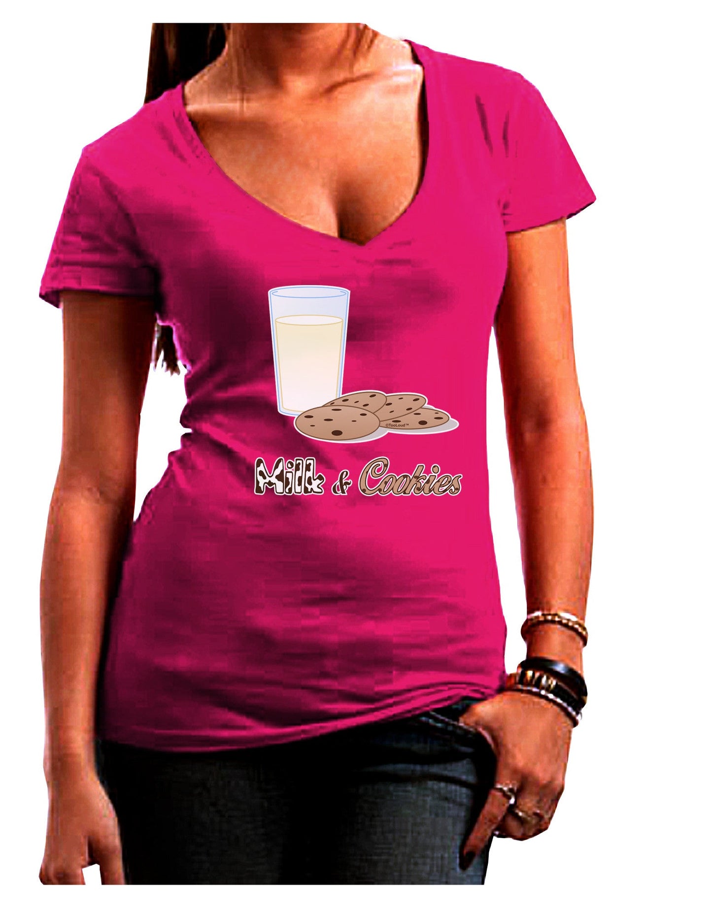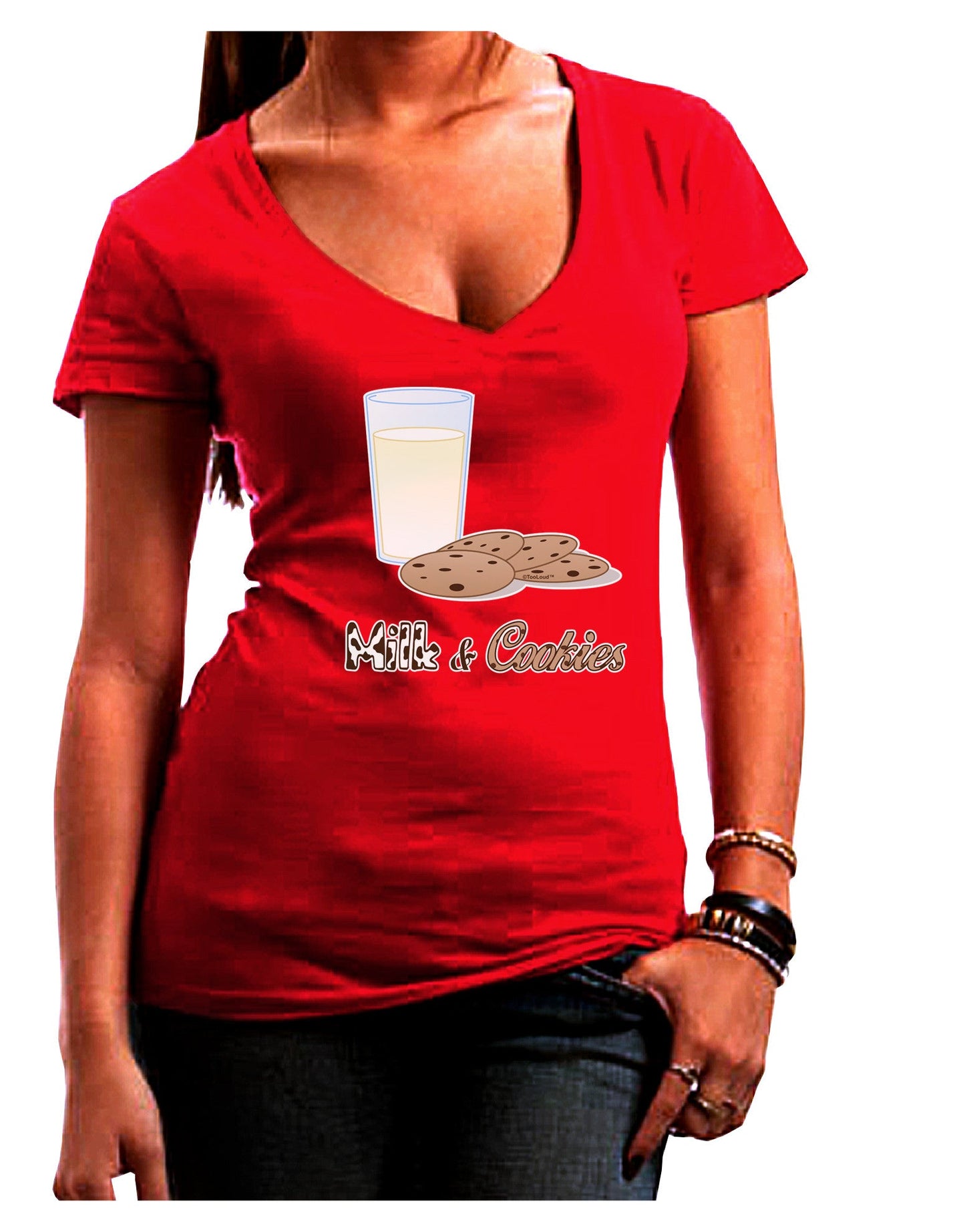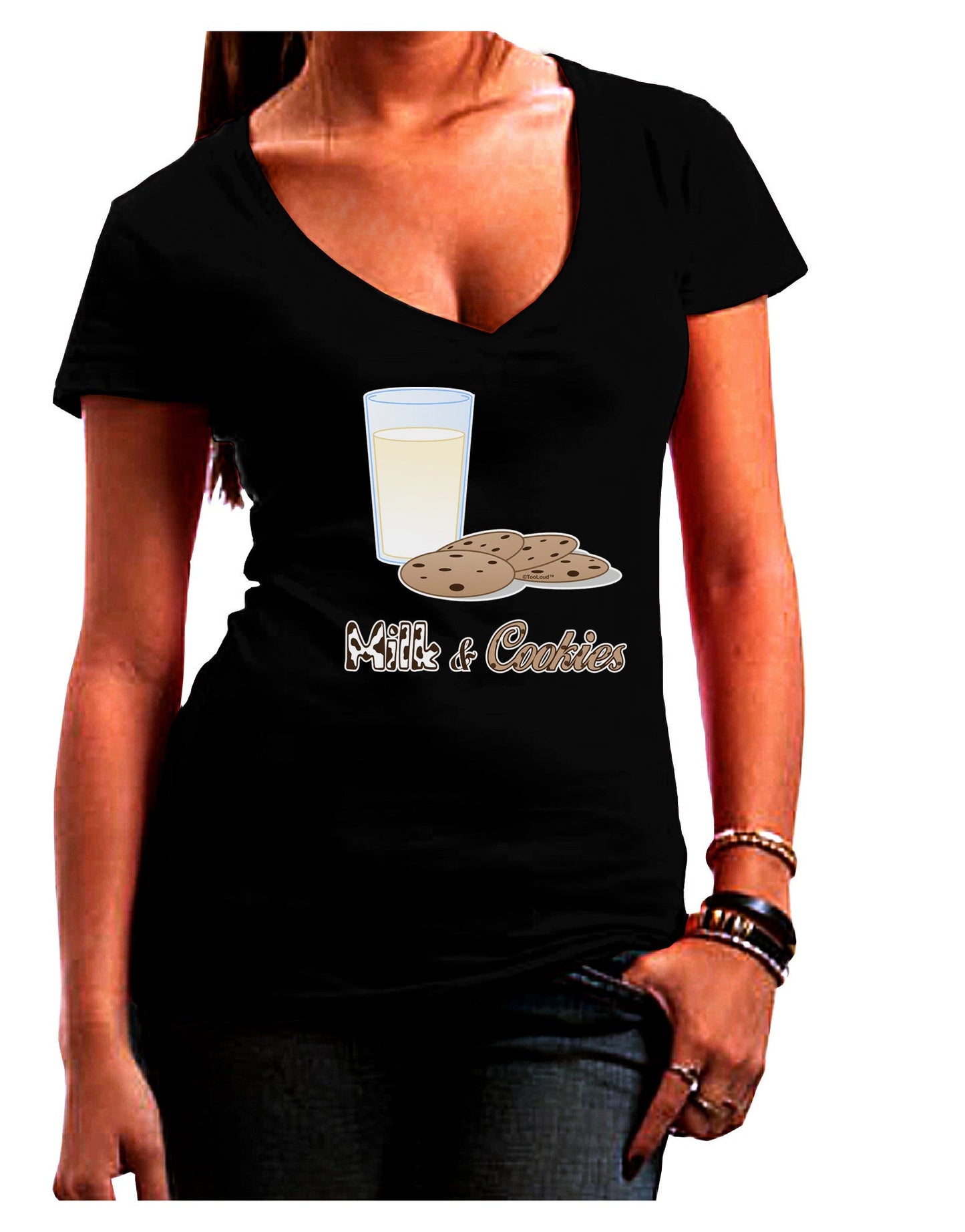 Milk and Cookies Design Text Juniors V-Neck Dark T-Shirt