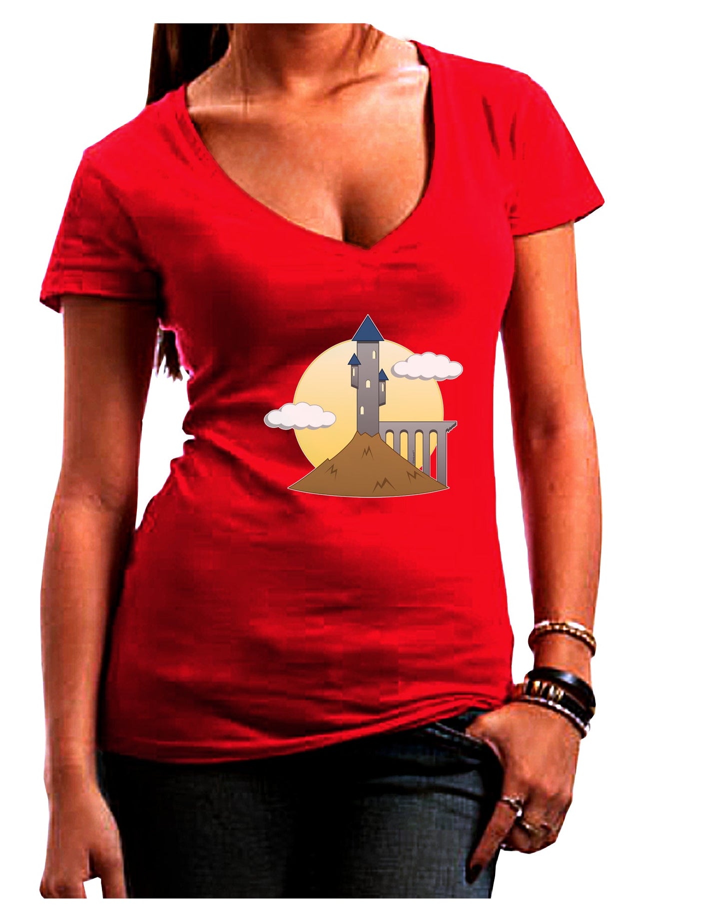 Moonlit Wizard Tower - Halloween Juniors V-Neck Dark T-Shirt