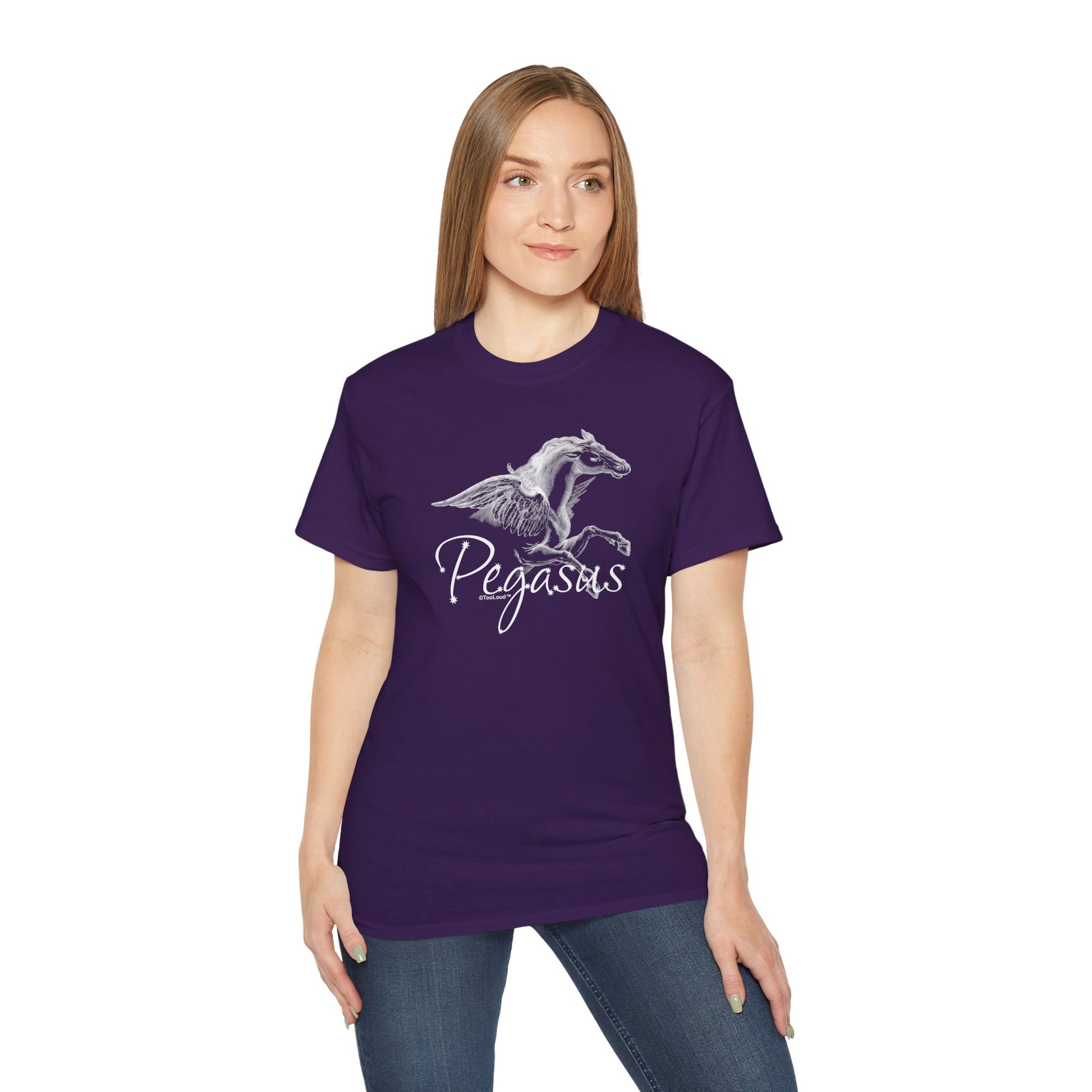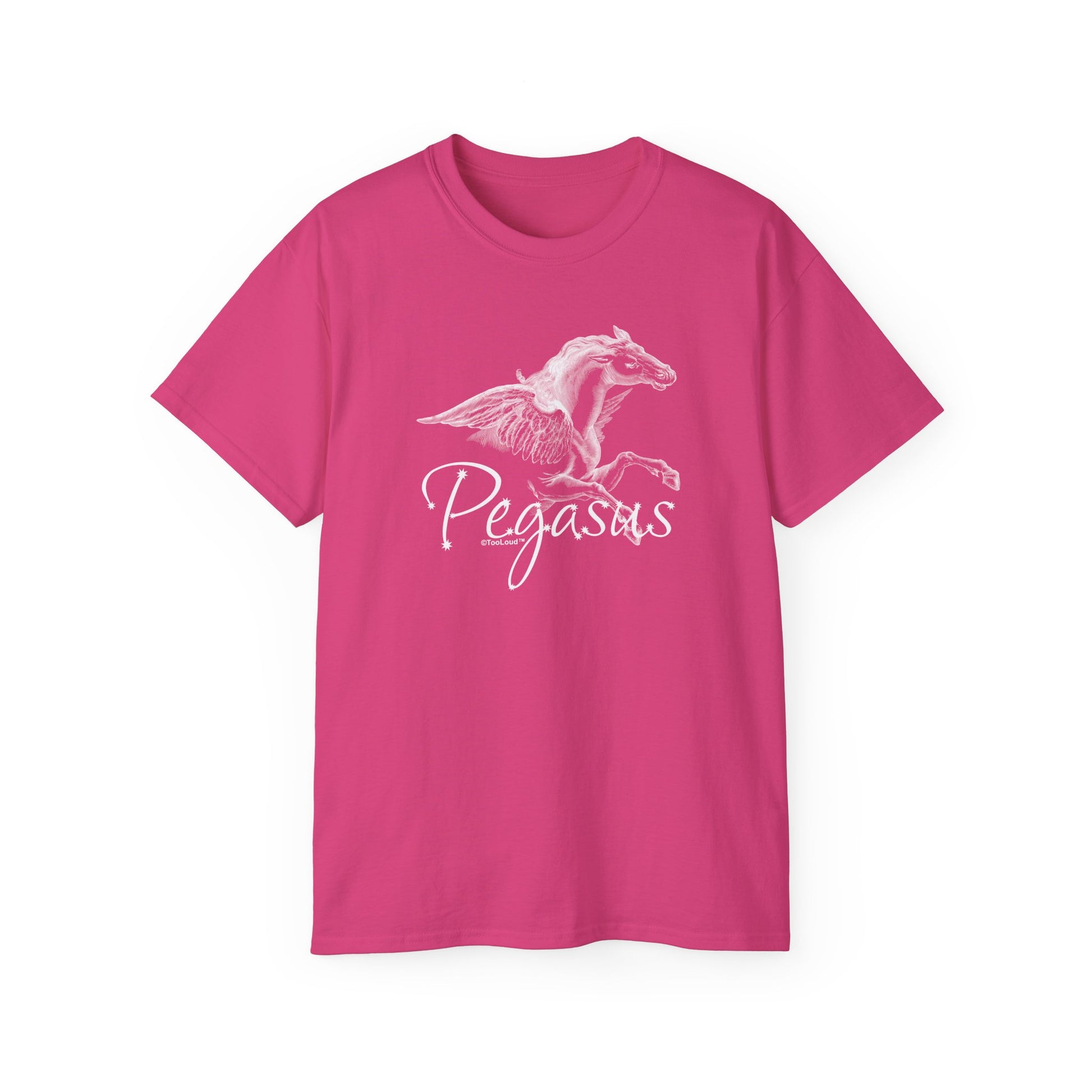 Let your imagination take flight with this elegant Pegasus Illustration Women’s Dark T-Shirt by TOOLOUD. Featuring a beautifully detailed mythical winged horse, this design is perfect for lovers of fantasy, mythology, and magical creatures.