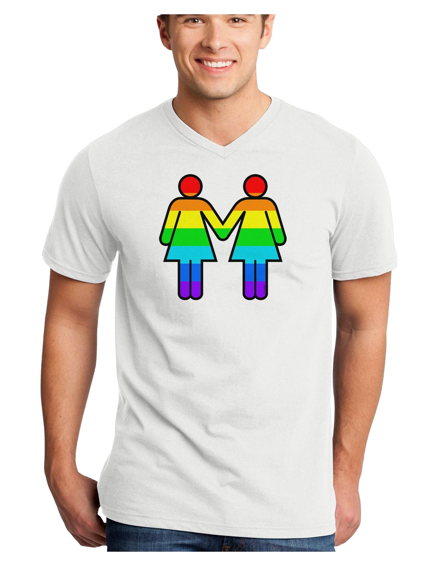 Rainbow Lesbian Women Holding Hands Adult V-Neck T-shirt