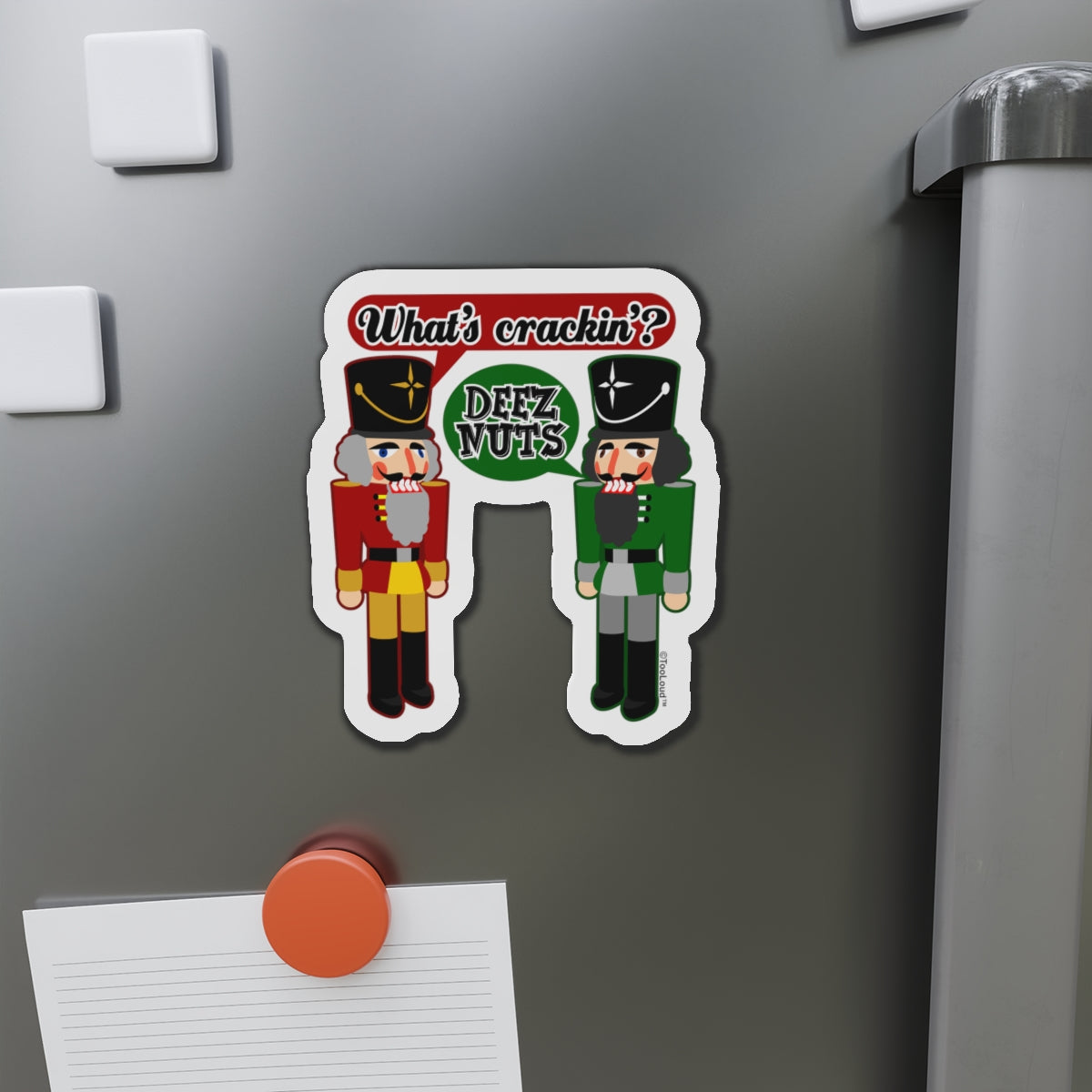 The Nutcrackers – “What’s Crakin’ Deez Nuts” Funny Text Die-Cut Magnet