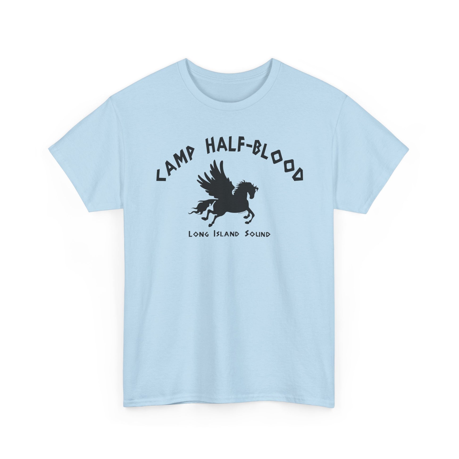 Inspired by books and stories, this tee proudly displays your allegiance to Camp Half-Blood and celebrates your inner hero. Product Features: Features the classic “Camp Half-Blood” design with Pegasus emblem Soft, breathable cotton-blend fabric for everyday comfort Flattering women's fit—ideal for fans and cosplay alike Great for Percy events, reading marathons, or casual wear Designed and printed in the USA Show your love for mythology and adventure with this must-have shirt for every modern-day demigod.
