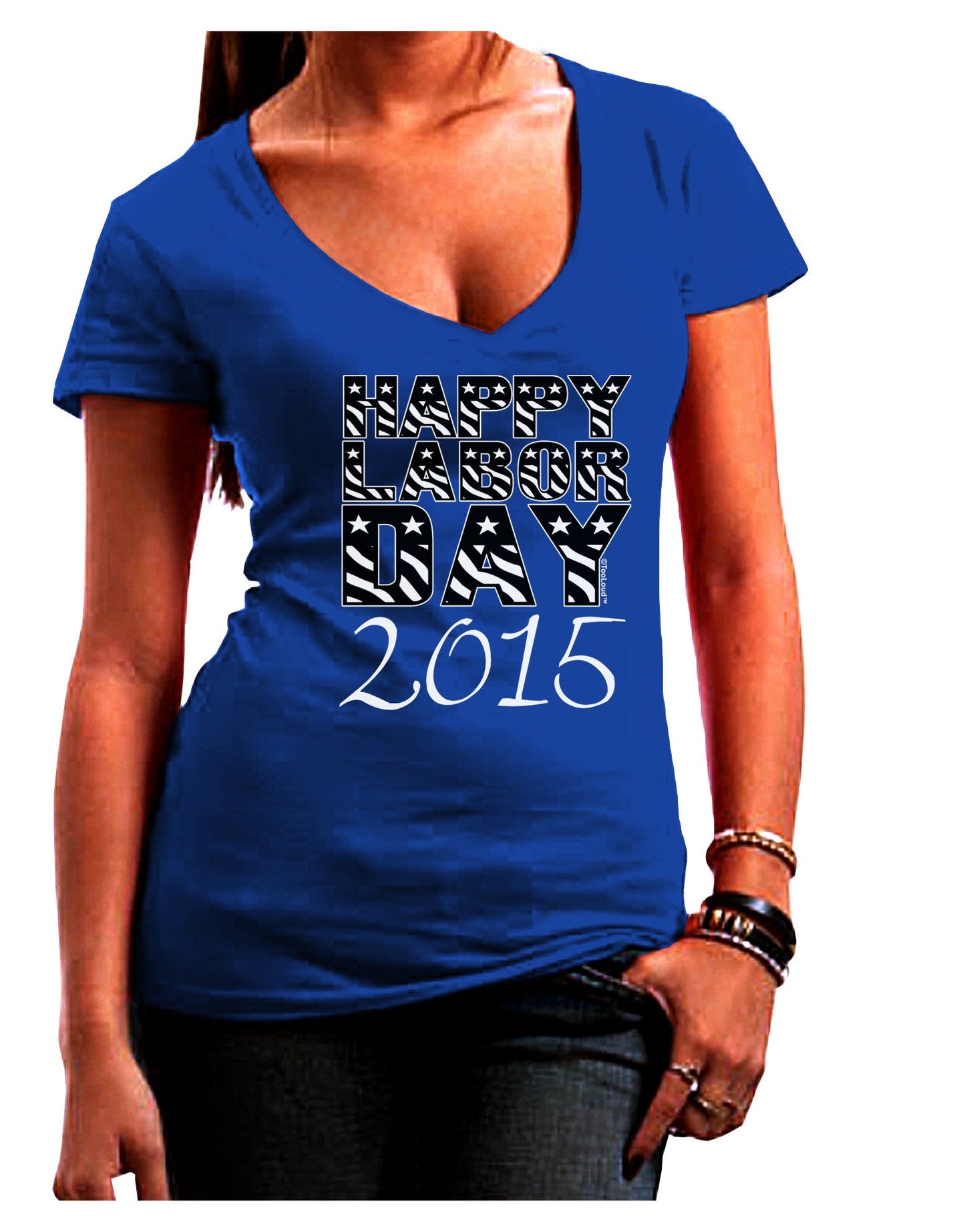 Happy Labor Day 2015 Juniors V-Neck Dark T-Shirt