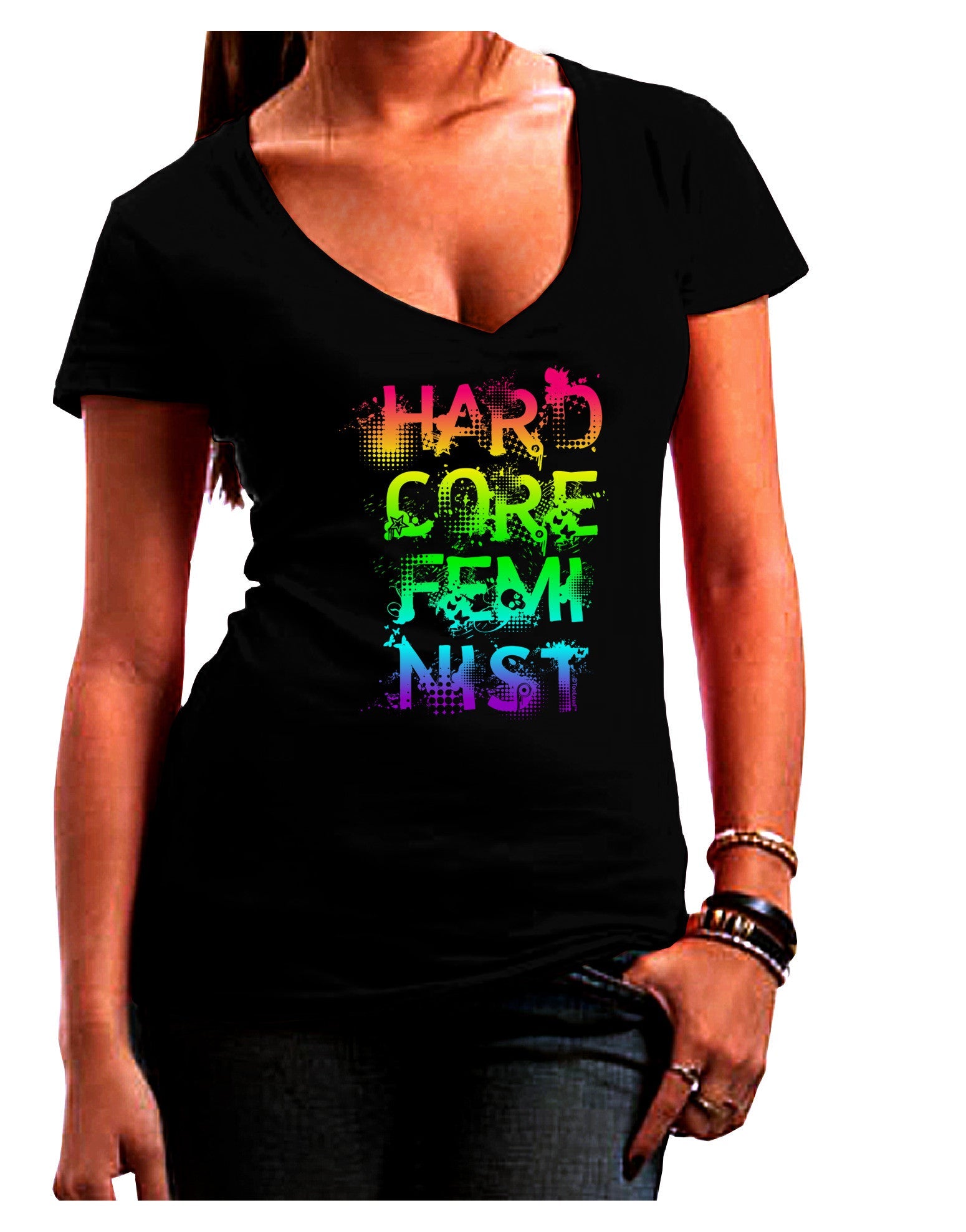 Hardcore Feminist - Rainbow Juniors V-Neck Dark T-Shirt
