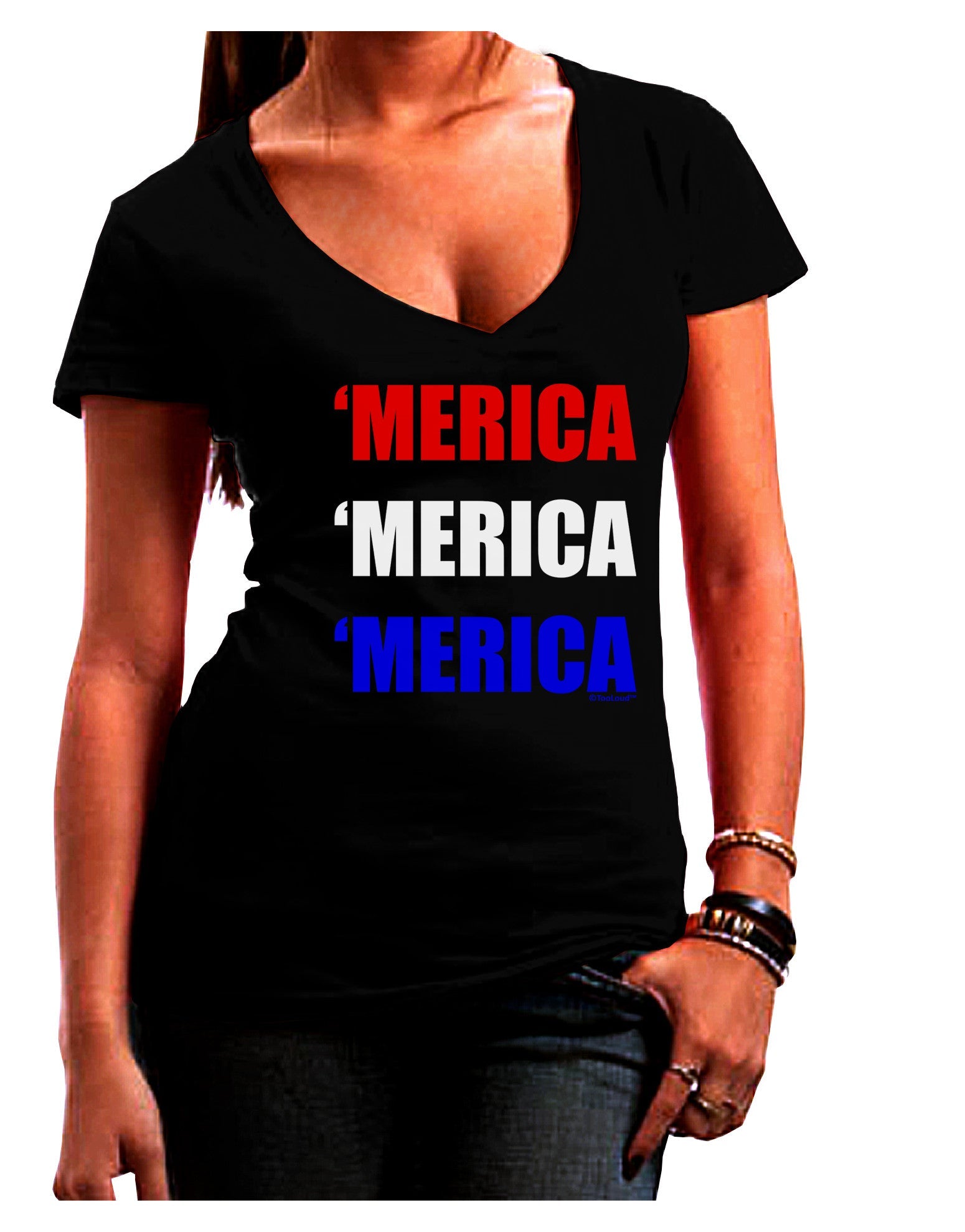 Merica Merica Merica - Red and Blue Juniors V-Neck Dark T-Shirt