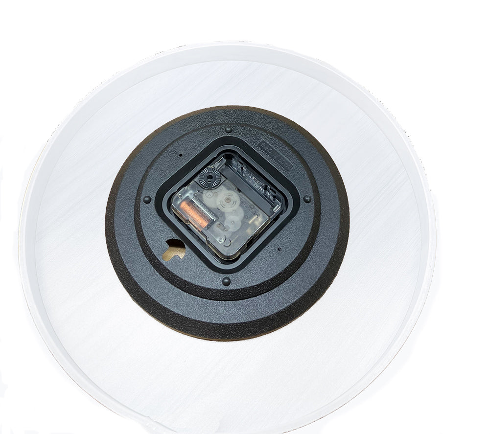 - Wall clock with glossy white face and black hands. Powered by 1 [1.5v] AA battery (NOT included).